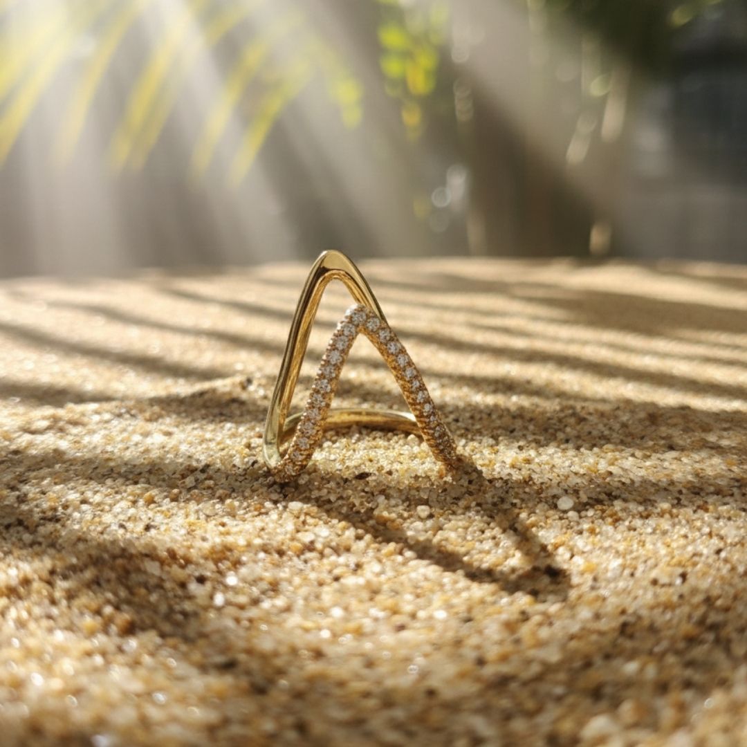 18K Gold Plated Anti-Tarnish V-Shape Crystal Ring