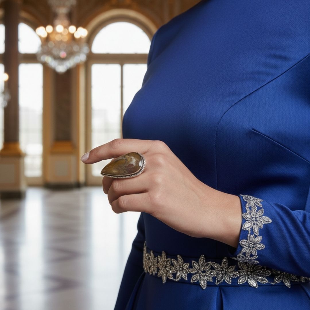 Handcrafted statement ring featuring a natural teardrop stone set in an oxidised silver finish. Bold, earthy, and perfect for everyday or festive styling.