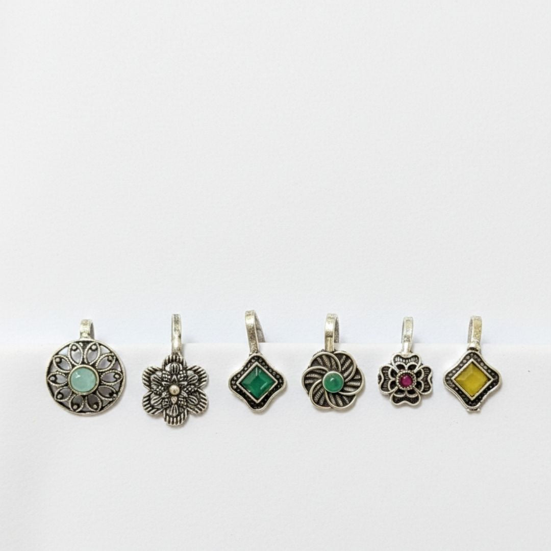Oxidised Silver Nose Pin Set – 6 Unique Stone & Floral Variations